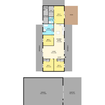 Shedding and vehicle accommodation are standout features, including a huge 13m x 10m garage, a 10m x 6m high carport with roller door (perfect for motorhomes, floats, or caravans), plus an additional double carport and extra storage areas.
