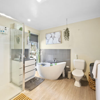 The home is set well back from the road, surrounded by established native gardens and wide front and rear decking that provide peaceful outdoor living spaces. Inside, the layout includes a master bedroom with walk-in robe and ensuite, two additional bedrooms with built-in robes, and a combined bathroom/laundry.