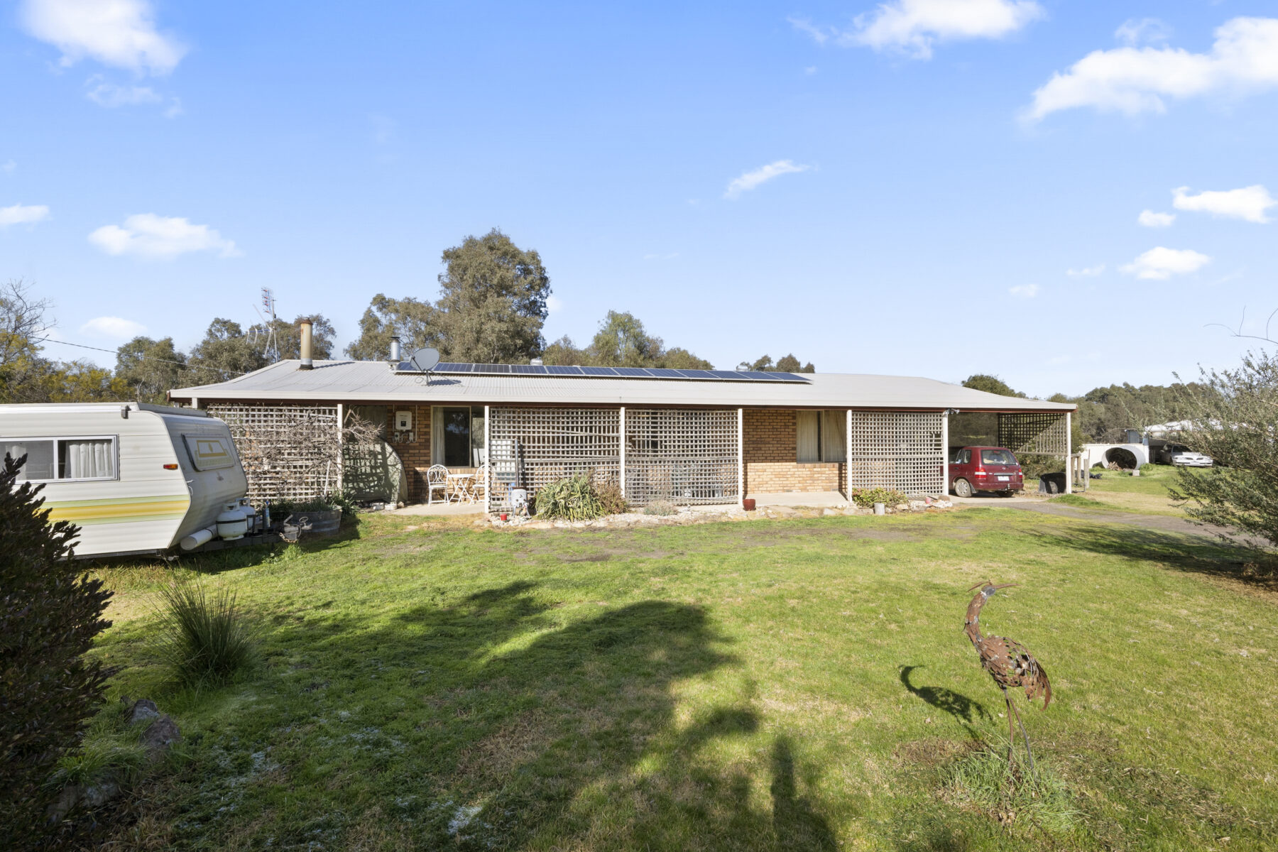 Located just minutes from the community of Dunolly in the heart of the goldfields, this 1980s three-bedroom brick home sits on approximately 2.4 acres of land, perfect for a small hobby farm or simply enjoying plenty of space. The lounge features a freestanding wood burner, and the kitchen is equipped with LPG cooking. Each of the three bedrooms includes built-in storage. The home is connected to mains water, septic, and power. A double carport adjoins the property along with a front veranda, and there is a separate double garage that offers additional storage space. The property is fully fenced and ready for you to create your ideal tree change. Contact Team Real Estate Kate today to explore this opportunity and discuss any cosmetic updates you may envision.