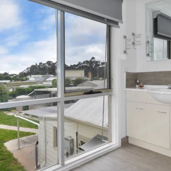 The family lounge is equipped with a reverse cycle split system and gas heating, providing comfort year-round. The open family zone includes a modern kitchen and dining area with a 900mm stove and a pantry, ideal for family meals and gatherings.