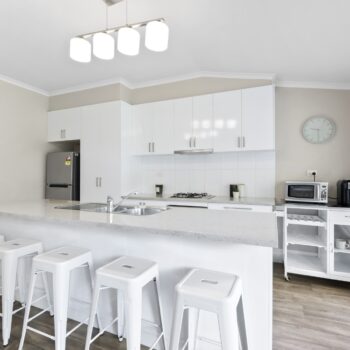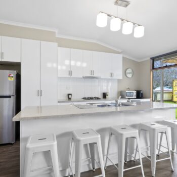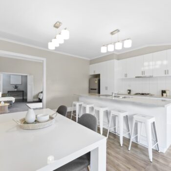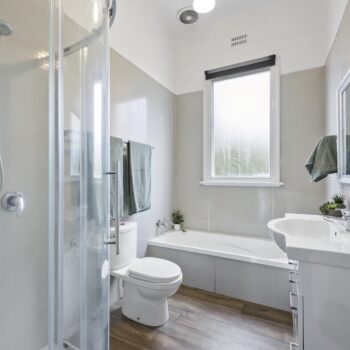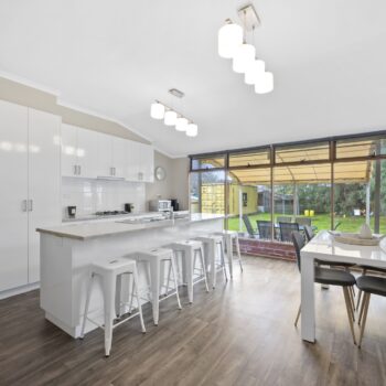 The kitchen is a space for creating and entertaining, complete with gas cooktop, electric oven, dishwasher, and ample storage. Large sash windows draw your eye to the private rear yard and alfresco area—ideal for relaxed afternoons with friends and family.