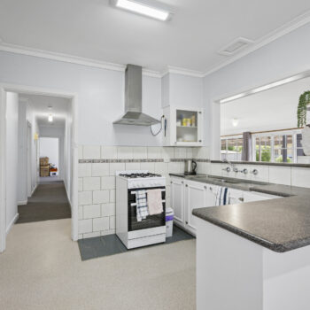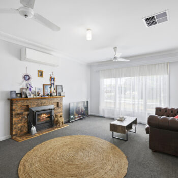 Inside, the home features a warm and inviting front lounge with wood heating and a reverse-cycle split system, plus ducted evaporative cooling for year-round comfort. The kitchen is compact yet practical with good storage and an adjoining meals area that’s filled with natural light. All three bedrooms include built-in robes, with tidy paintwork and flooring throughout. A desirable second living area at the rear adds flexibility for families, work-from-home or relaxation.