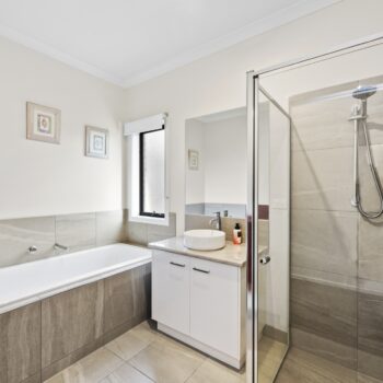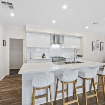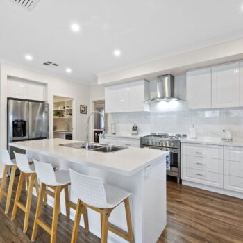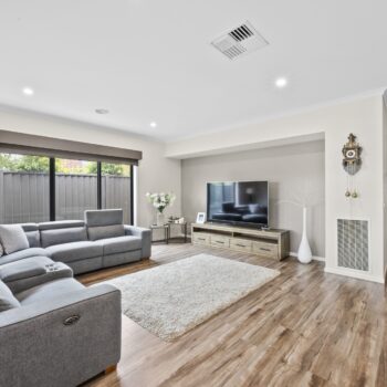 The open-plan kitchen, dining, and living area will impress entertainers – featuring stone benchtops, a 900mm stainless-steel stove, and a spacious butler’s pantry with an extra sink and ample storage. Bi-fold doors open to a covered alfresco zone, ideal for hosting friends or relaxing in your private, low-maintenance garden.