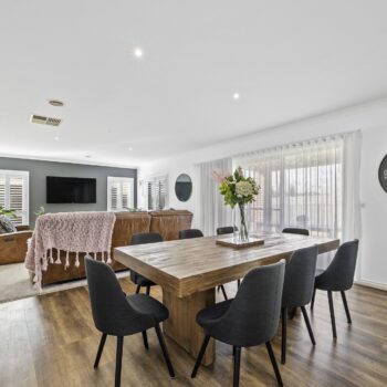 Every corner of this property reflects quality, from the high ceilings and natural light enhanced by stunning plantation shutters to the premium fixtures and fittings. Designed for comfort in any season, the home is equipped with ducted heating and evaporative cooling. The kitchen is a cook’s dream, offering a gas cooktop, electric oven, and space for dishwasher